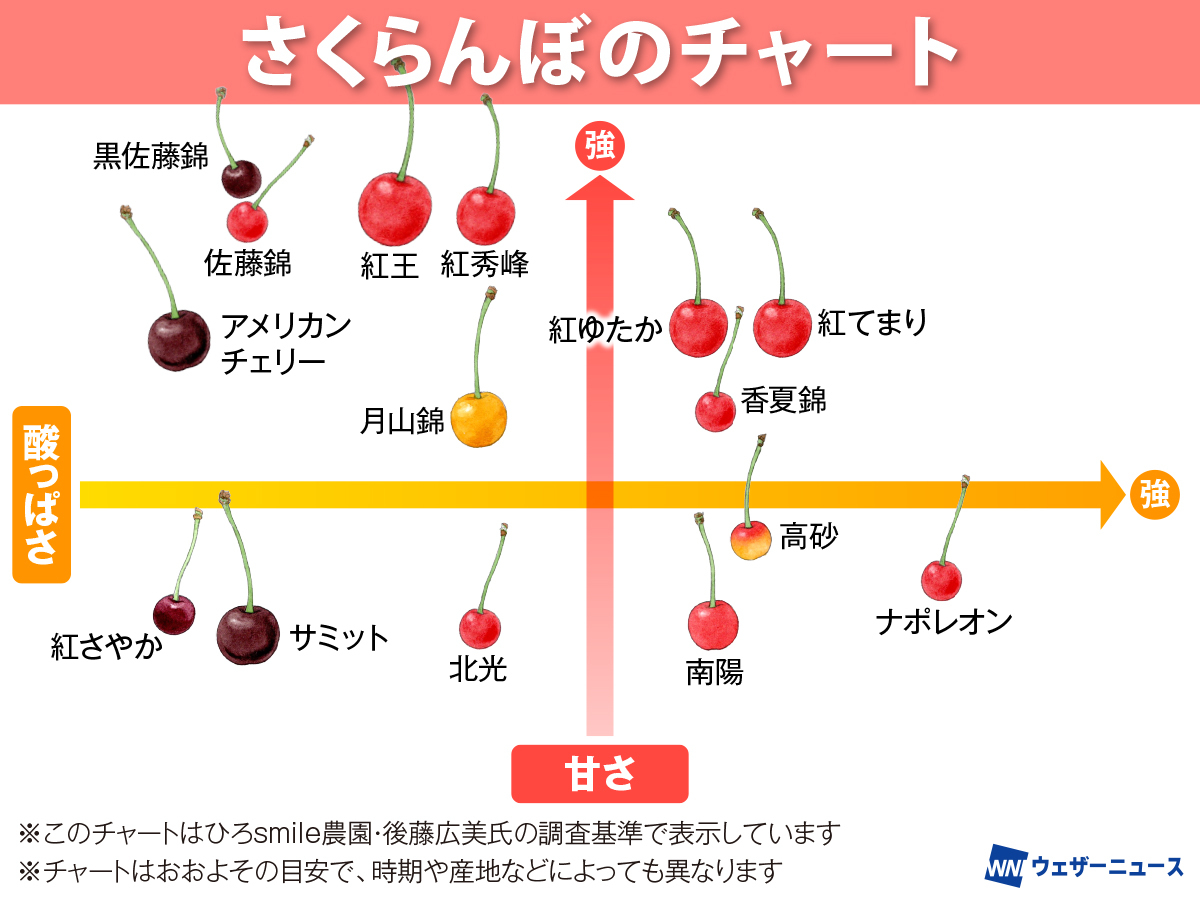 甘味と酸味のバランスが一目で分かる“さくらんぼチャート”