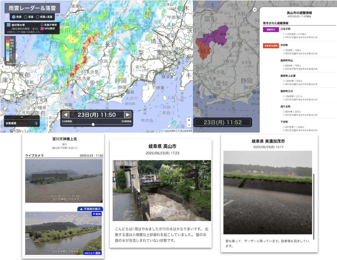 » 岐阜県で1時間に約120mmの猛烈な雨