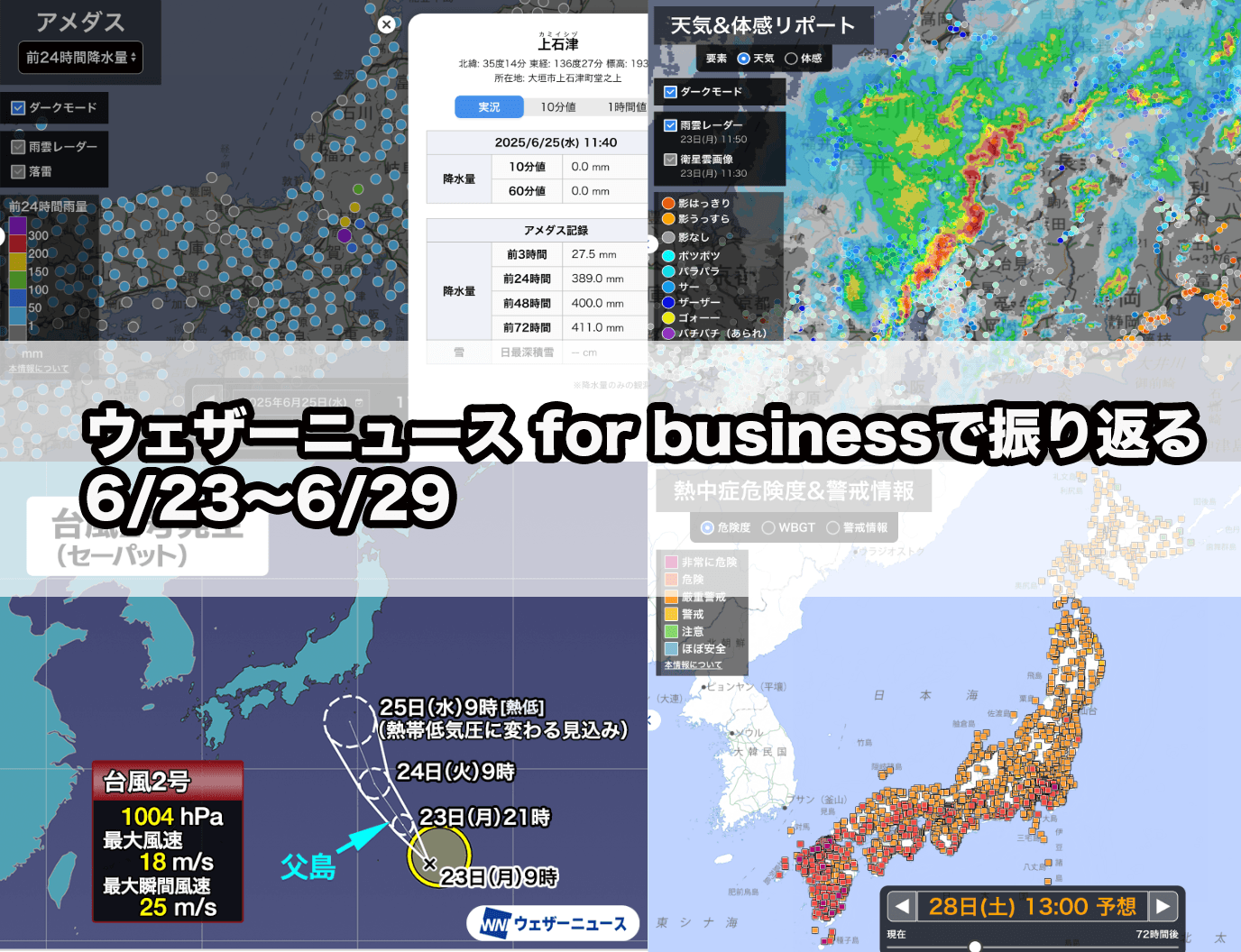 【前線停滞で激しい雨に、近畿以西は梅雨明け】ウェザーニュース for business振り返り(2025/6/23〜6/29)