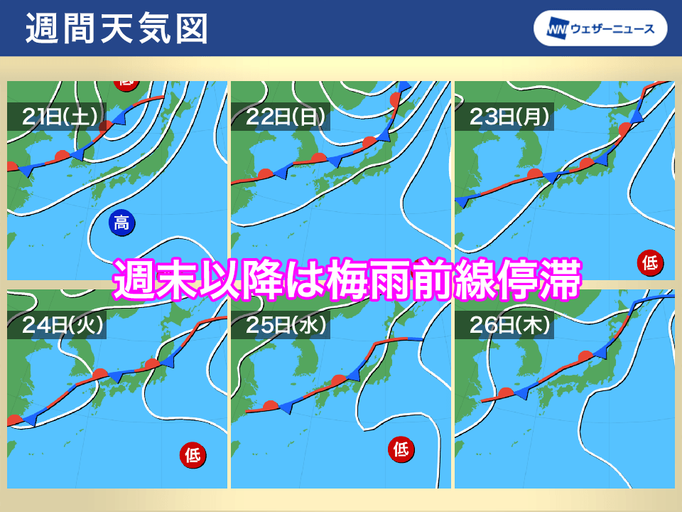 週末以降は梅雨前線が復活 お出かけは土曜のうちに