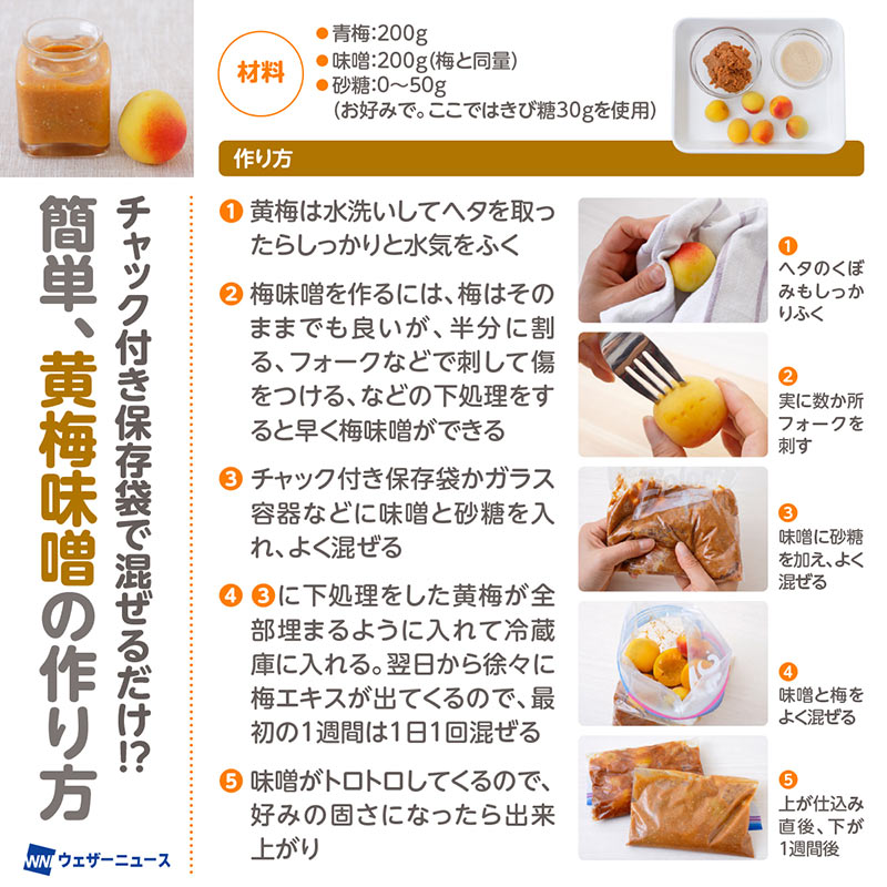 チャック付き保存袋で混ぜるだけ!? 夏にぴったりの「黄梅味噌」の作り方