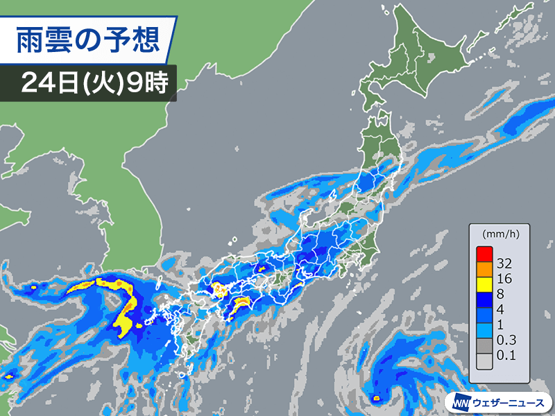 東海や西日本も断続的に雨が強まる