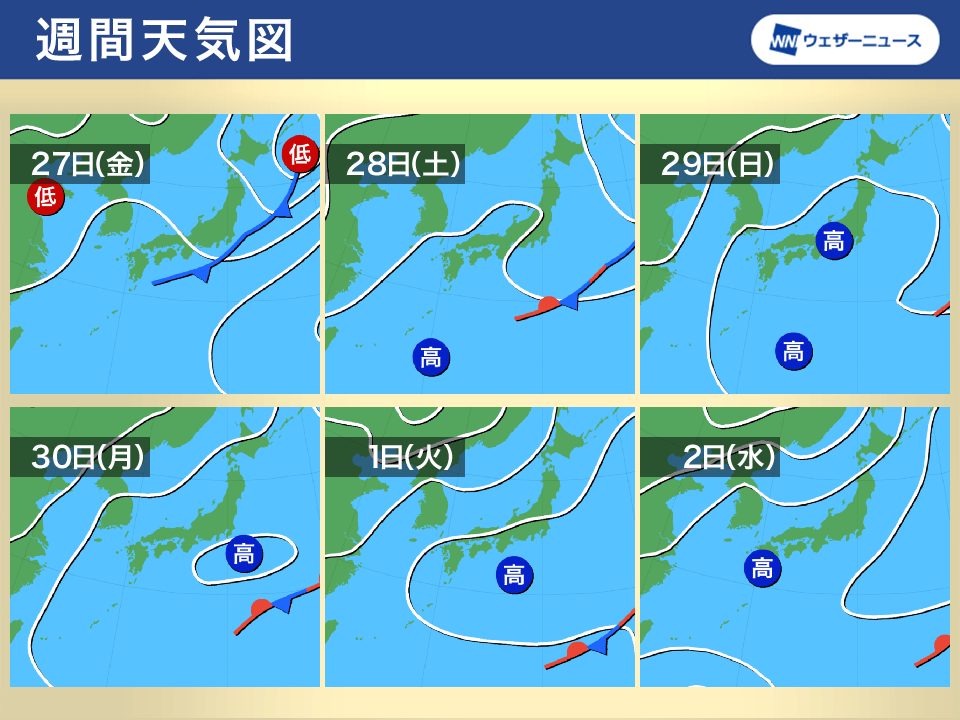 週末以降は西日本や東日本を中心に真夏を思わせるような厳しい暑さになりそうです。特に29日(日)から来週前半にかけては35℃以上の猛暑日になるところが続出する予想です。