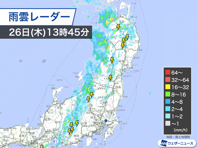 東北、関東では激しい雨による道路冠水や河川の増水、落雷、突風などに警戒が必要です。