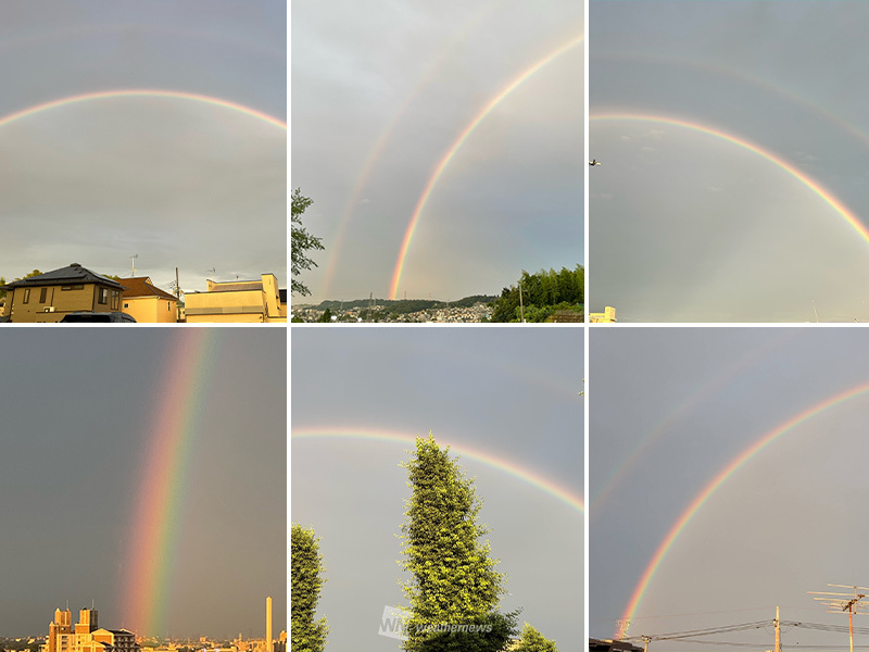 雨の上がった関東や東海では、夕空に虹がかかりました。中には"二重の虹"ダブルレインボーが見られたエリアもあります。