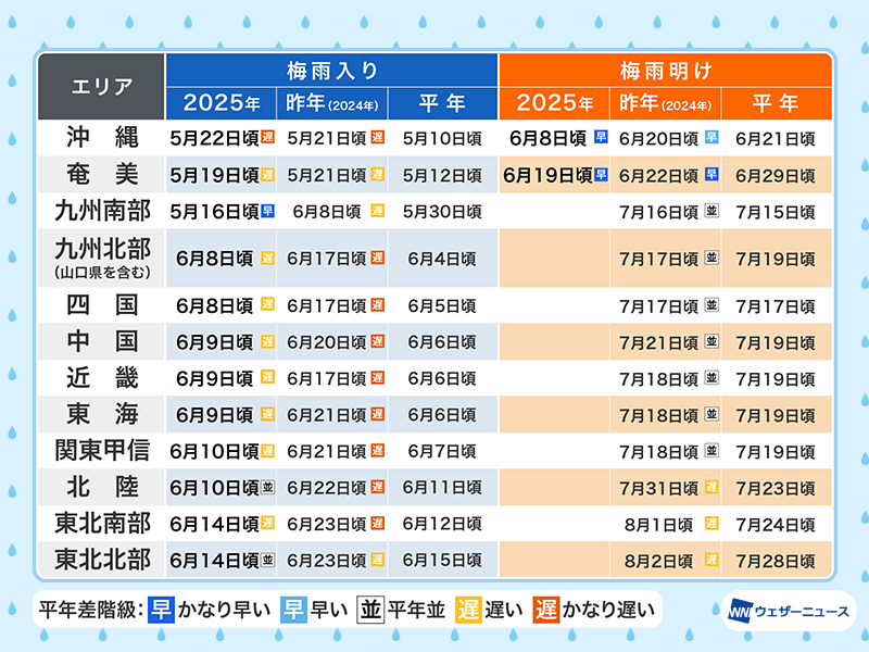 このため、平年であれば7月中旬頃まで続く梅雨の時期が、今年はもう終わってしまう可能性もでてきました。地域によっては統計史上最早の梅雨明けとなる可能性も否定できません。