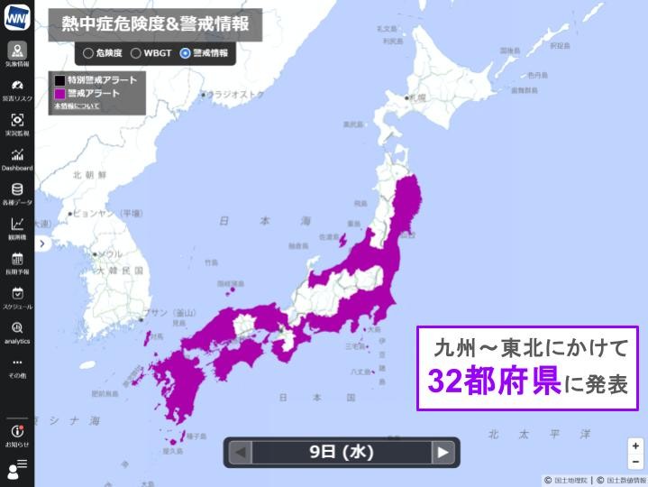 また、環境省と気象庁は熱中症警戒アラートを九州〜東北の32都府県に発表しました。岩手県・宮城県・福島県では今年初めての発表となりました。