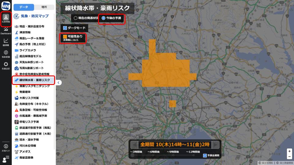 気象庁は「線状降水帯が発生して大雨災害発生の危険度が急激に高まる可能性がある」との情報も発表。WNI独自予想でも埼玉県や東京都心付近での可能性を予想しました。