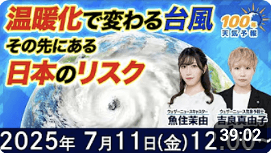 毎週違った角度から、“未来の気候”に迫る専門番組「100年天気予報」。7月11日(金)に放送した第13回目のテーマは「温暖化で変わる台風 その先にある日本のリスク」。