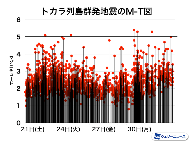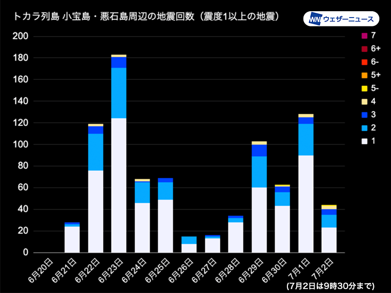 トカラ列島近海の地震で再び震度5弱 近年に比べ活発な活動が長期化