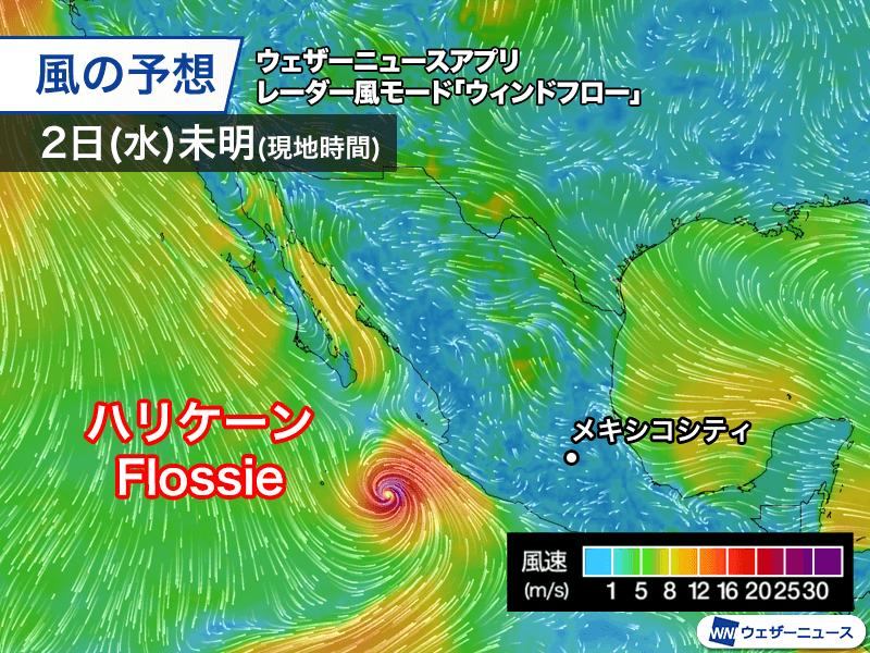 メキシコ沖の太平洋の熱帯低気圧が勢力を強め、現地時間の6月30日(月)夜にハリケーンFlossie(フロッシー)となりました。太平洋でのハリケーンの発生は今年3つめです。(大西洋・メキシコ湾ではまだ発生していません。)