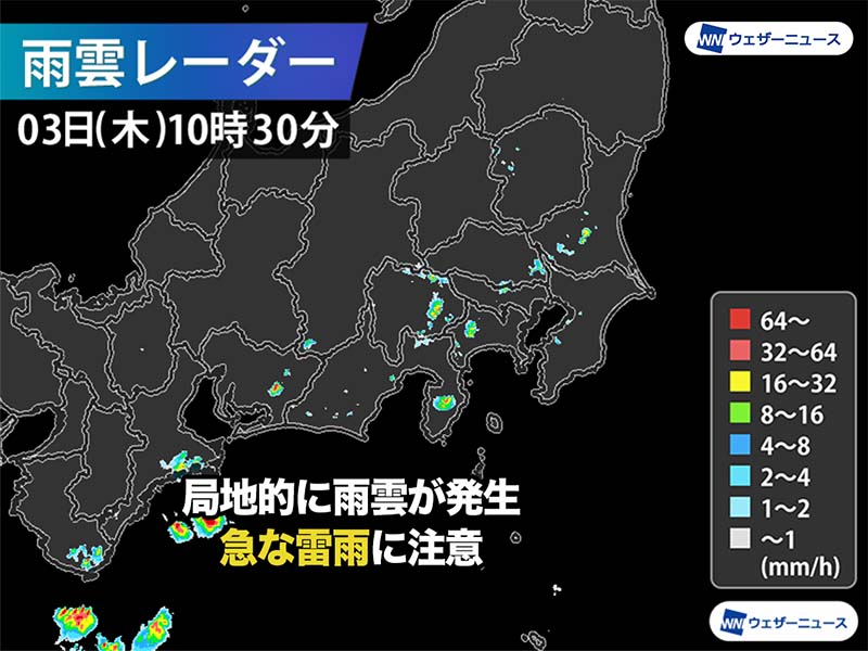関東平野部でも雨雲が急発生 午前からゲリラ雷雨のおそれ