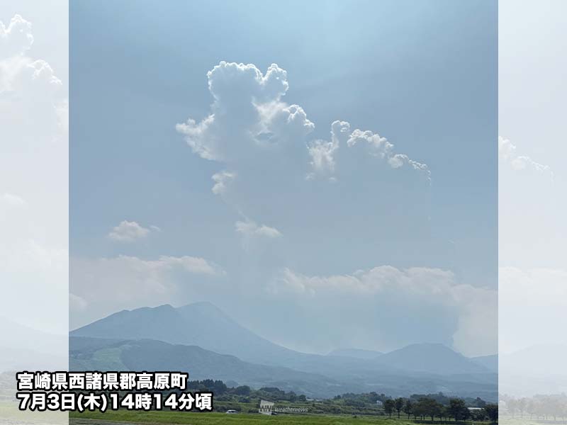 霧島山・新燃岳では6月終わりから噴火活動が続いています。気象庁によると今日3日(木)13時49分に大きく噴火し、噴煙は火口上5,000mまで上がったと観測されています。