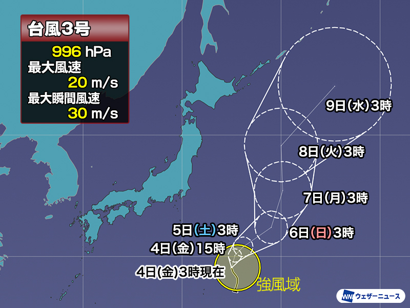 台風3号と熱帯擾乱の動向に注目