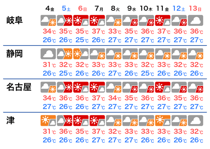 この先は夏らしい天気が続くことで、全国的に気温も夏らしくなる予想です。東海以西の各地では来週は最高気温が35℃以上の猛暑日が続出するおそれがあります。
