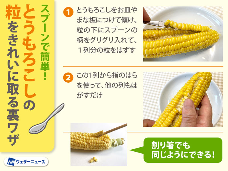 スプーンで簡単! とうもろこしの粒をきれいに取る裏ワザ