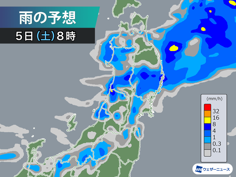 にわか雨や雷雨は山沿いの一部に限られるとみています。