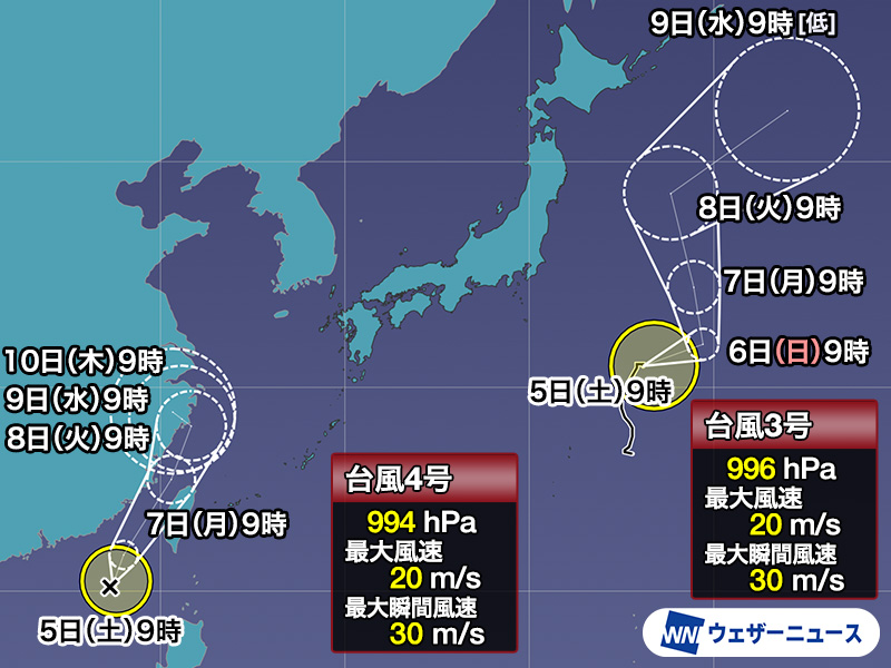 台風の発生は、3日(木)に発生した台風3号以来で2日ぶりです。