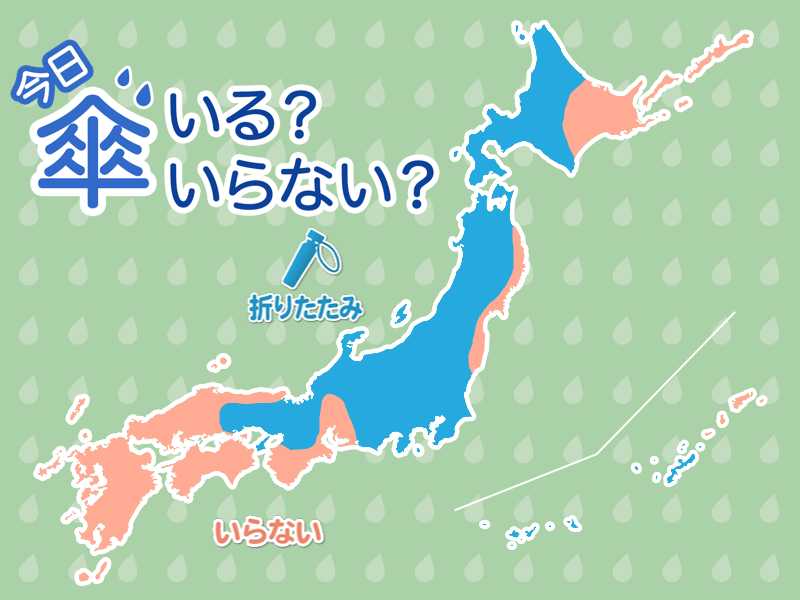 今日は大きい傘が必要なほど本降りの雨が長い時間降り続く所はなさそうです。
