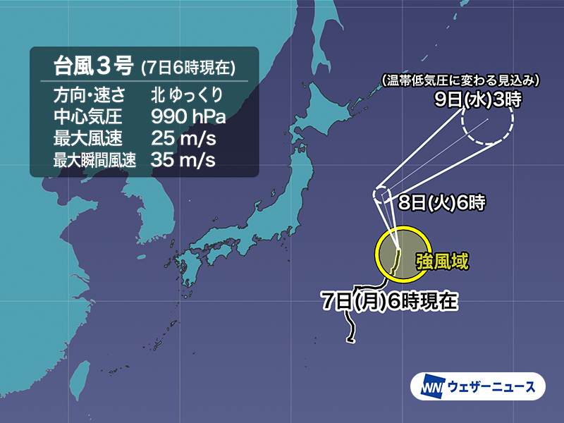 台風4号(ダナス)の強風域に先島諸島が入る 沖縄は強雨や高波に注意