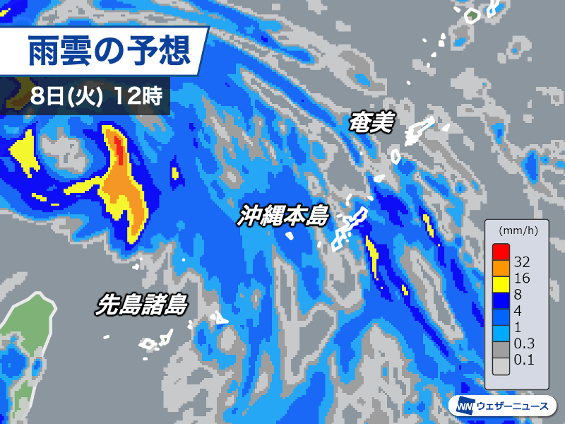 午後にかけても沖縄本島や奄美を中心に、断続的に雨が強まる見込みです。一時的には雷や突風を伴って激しく降り、道路冠水などが発生するおそれがあります。