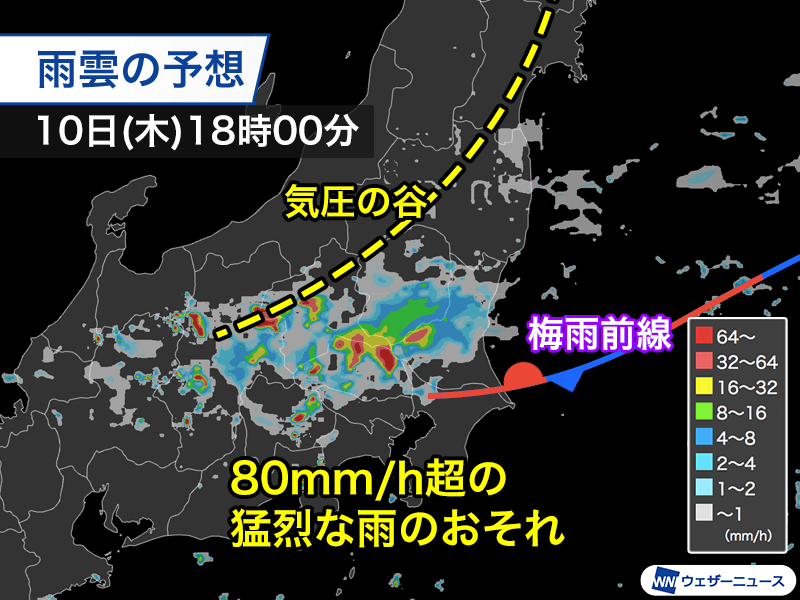 こうした状況から気象庁は「茨城県、栃木県、群馬県、埼玉県、千葉県、東京地方では、10日夕方から夜のはじめ頃にかけて、線状降水帯が発生して大雨災害発生の危険度が急激に高まる可能性がある」との情報を発表しました。
