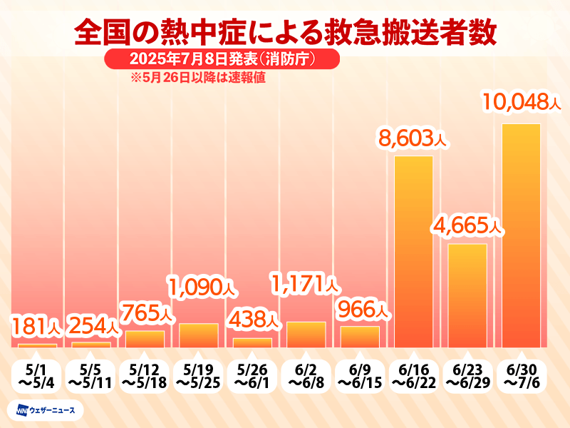 熱中症による救急搬送者 今年初めて1万人超え