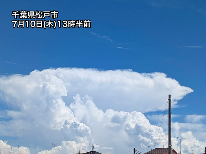 関東の雷雨 山沿いや千葉県で雨雲発達 晴れている所も急変注意