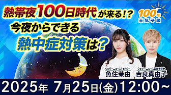毎週違った角度から、“未来の気候”に迫る専門番組「100年天気予報」。7月25日(金)に放送した第14回目のテーマは「熱帯夜100日時代が来る!?今夜からできる熱中症対策」。