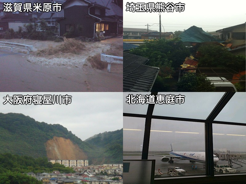 下の真ん中:大雨による大規模な浸水(福岡県久留米市) YasaiSanさん(2020/7/8)