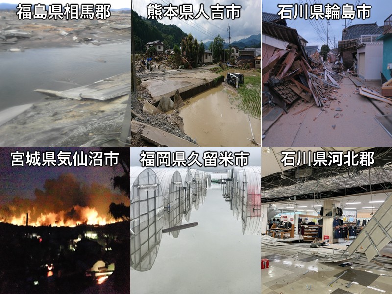 リポート開始以来の20年間、大地震や大津波、大雨・台風による水害、落雷や降雹などたくさんの災害が発生しました。中でも被害の大きかった東日本大震災(平成23年東北地方太平洋沖地震)、西日本豪雨(平成30年7月豪雨)、令和6年能登半島地震をはじめ、被災地の皆さんからのウェザーリポートが、広範囲にわたる被害状況をリアルタイムに伝える重要な情報源となりました。被害報告をマップにプロットし「被害リポートマップ」として特設サイトで公開。一般ユーザーだけでなく、現地で救援活動や復旧作業を行う自治体や企業、法人などに広く活用いただきました。