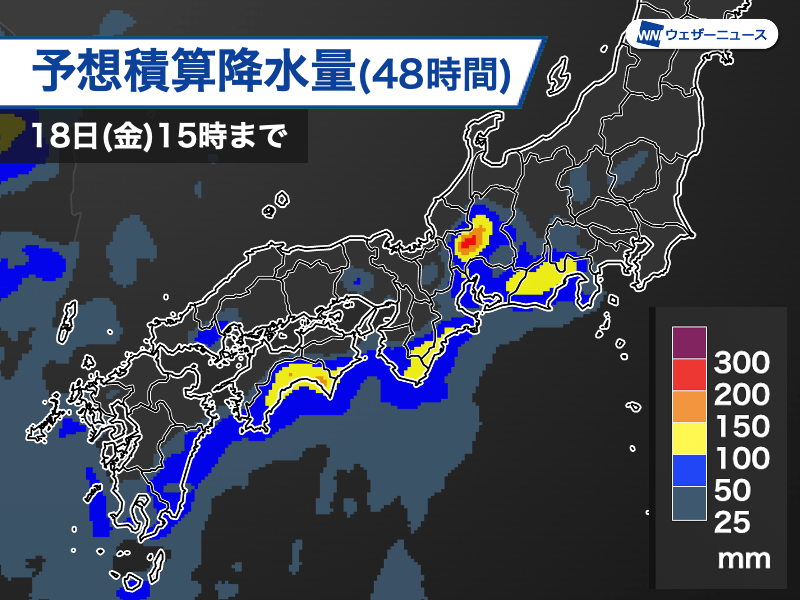 東海や近畿南部、四国太平洋側では朝から断続的に雨が強まり、雷や突風を伴った非常に激しい雨となるおそれがあります。風も強く、横殴りの雨に注意が必要です。荒天時の外出や無理な移動は控えてください。