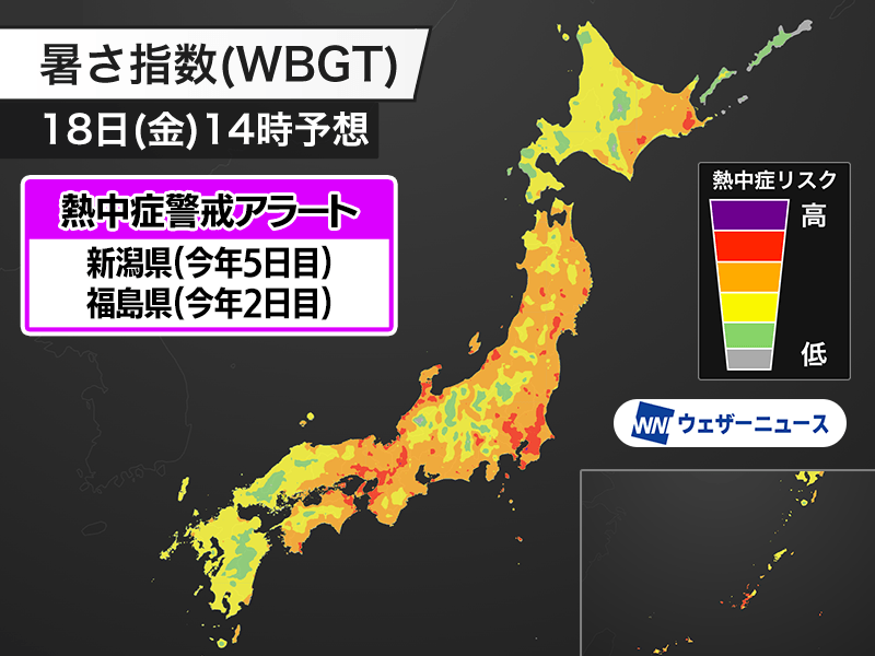 今日7月18日(金)の熱中症警戒アラート 福島県と新潟県に発表 暑さ対策を