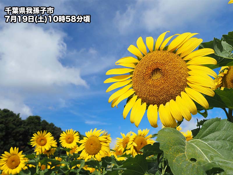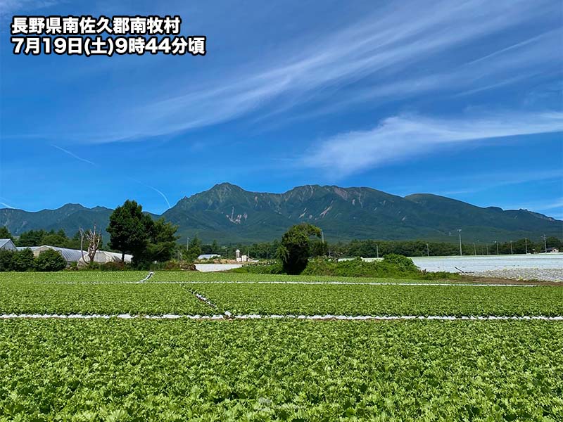 今日19日(土)は高気圧に覆われ、東北地方から九州北部にかけての広い範囲で晴れています。午前中には東北北部で梅雨明けの発表もありました。