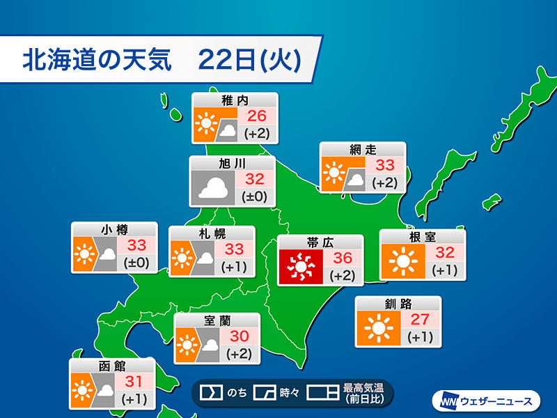 札幌は2日連続で熱帯夜 昼間は北海道の広範囲で厳しい暑さ