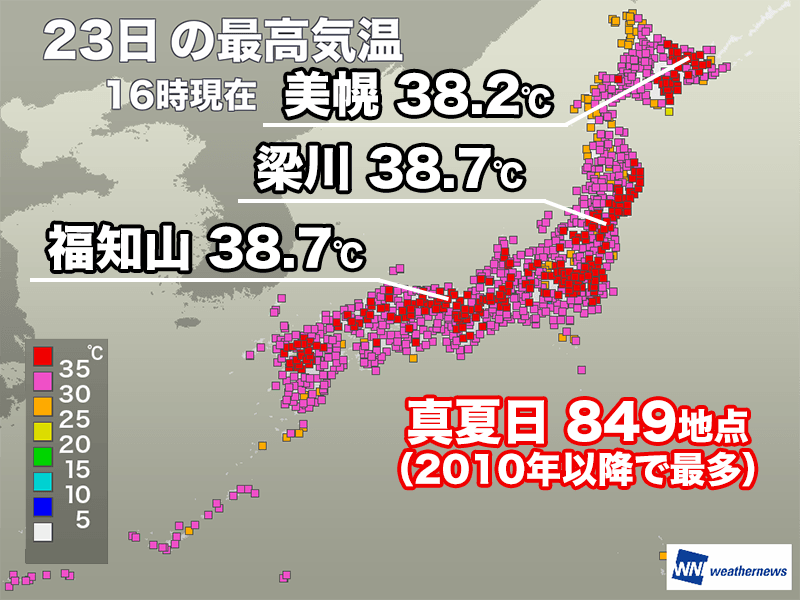 全国9割超の地点で真夏日 北海道、東北で38℃超える暑さ