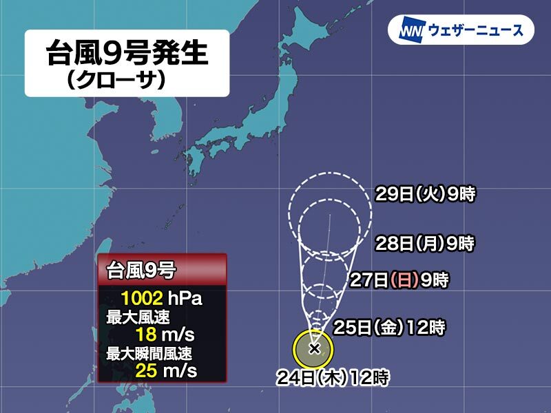 台風9号(クローサ)発生 今週3つ目でトリプル台風に 小笠原に接近