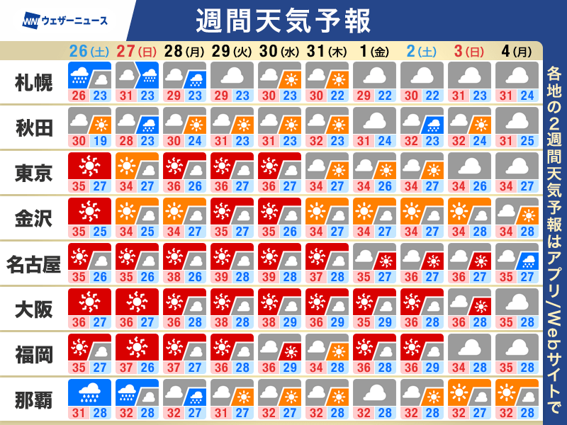 来週も猛暑警戒 沖縄や小笠原諸島は台風の影響注意