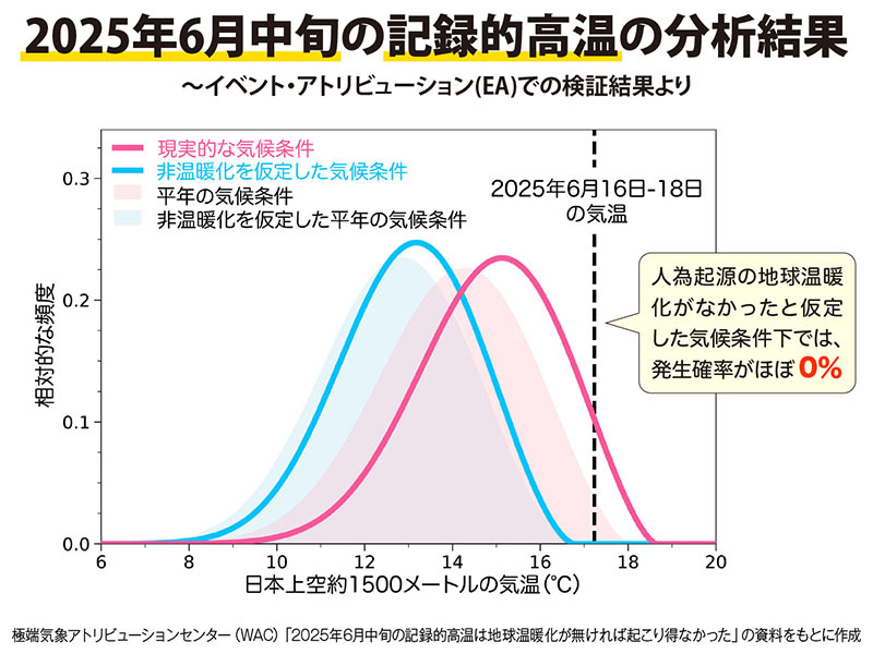 2025年6月16日~18日の高温は、地球温暖化による底上げがなければ、偶然の気象現象が重なったとしても起こり得ないものだとわかったのです。