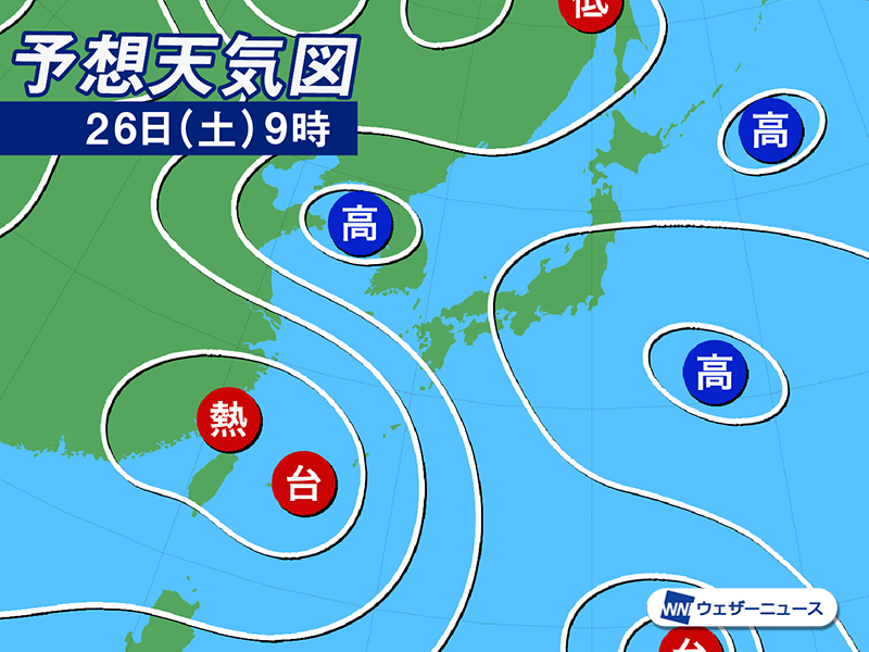 本州付近は太平洋高気圧に覆われるため、東北から九州北部の広い範囲で夏空が広がり、厳しい暑さとなる見込みです。レジャーや花火大会など屋外で長時間過ごす場合は最大限の熱中症対策が欠かせません。