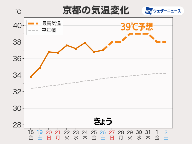 日本付近は太平洋高気圧とチベット高気圧に覆われる日が続き、九州北部から東北では危険な暑さになる日が続く見通しです。最高気温が35℃以上の猛暑日が続き、最高気温が40℃に迫るほどの高温となる所も予想されています。