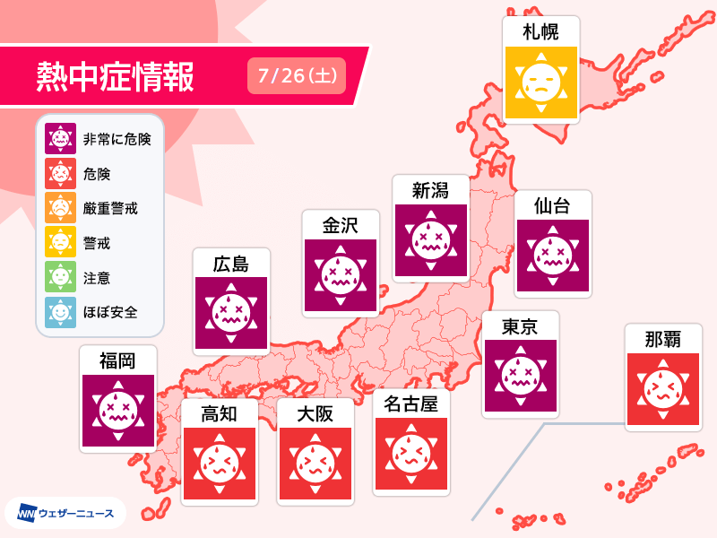 今日も九州から東北で危険な猛暑 北海道は曇りや雨で暑さ和らぐ