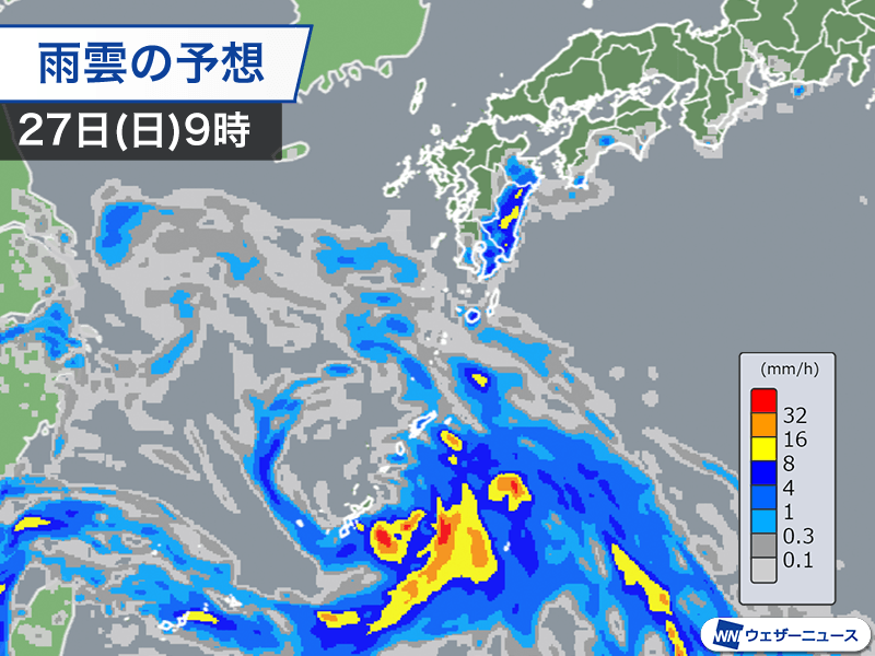 台風から変わった熱帯低気圧と太平洋高気圧の影響で湿った空気の流入が続き、雨雲が発達しやすくなります。特に奄美地方や大東島地方は大雨のリスクが高く警戒が必要です。