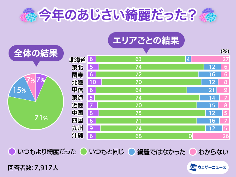 質問:今年のあじさい綺麗だった?調査日:2025年7月14日 6時〜21時