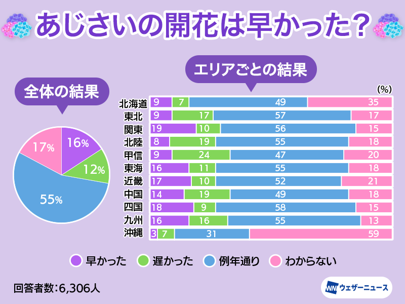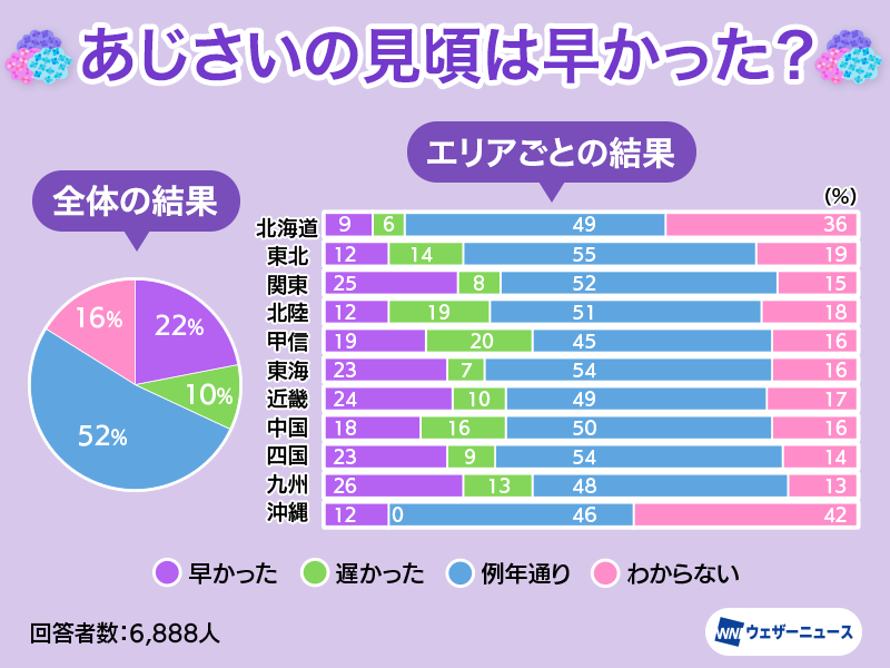 今年気象庁から発表されたあじさいの開花日は、地域によって非常に早い所もあれば遅い所もありました。