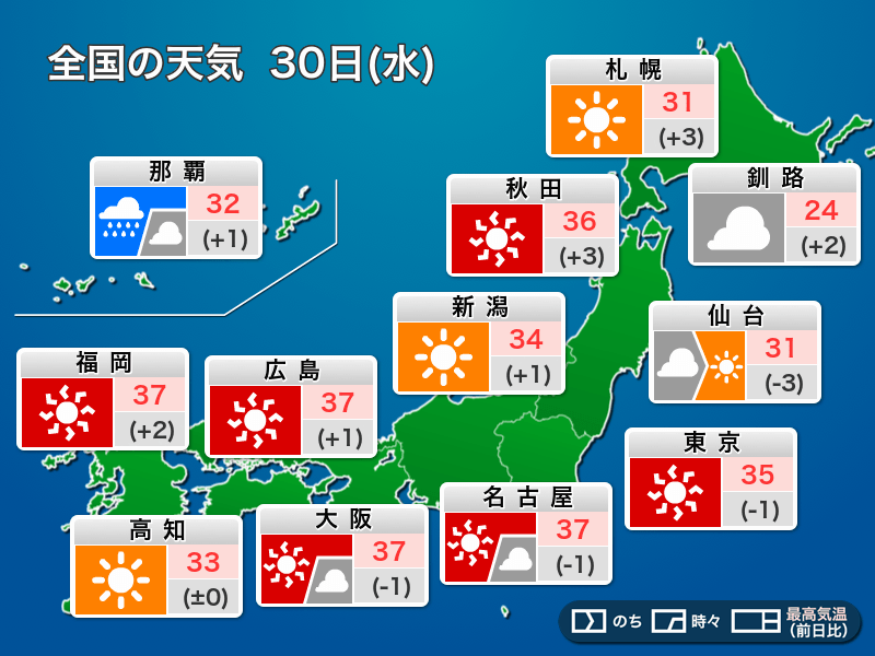 今日7月30日(水)の天気予報