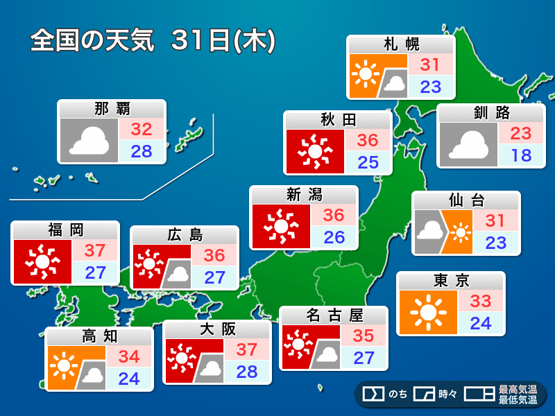 明日7月31日(木)の天気予報