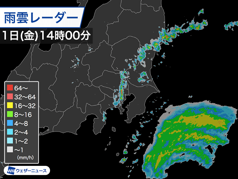 今日の日中は、台風周辺の雨雲がかかる千葉県や茨城県を中心に雨が降り、東京都心や横浜でも午後は雨になっています。