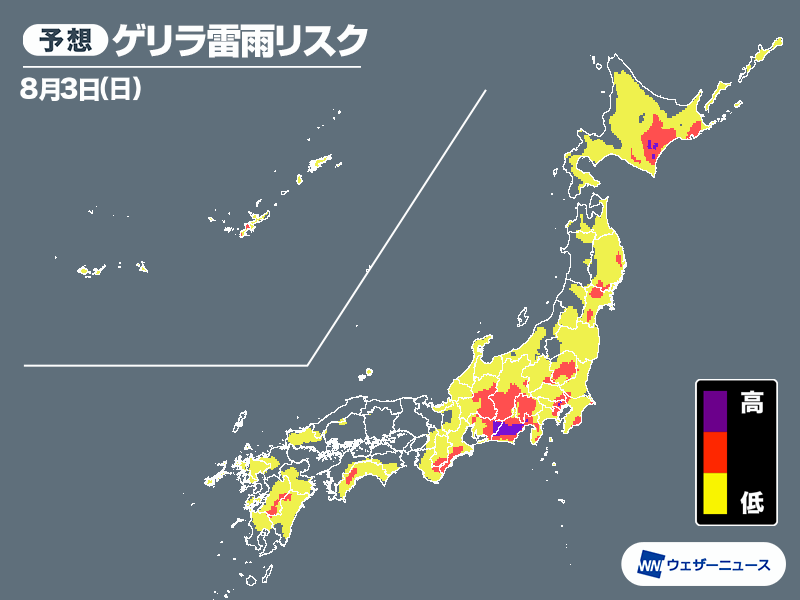 明日8月3日(日)の天気予報