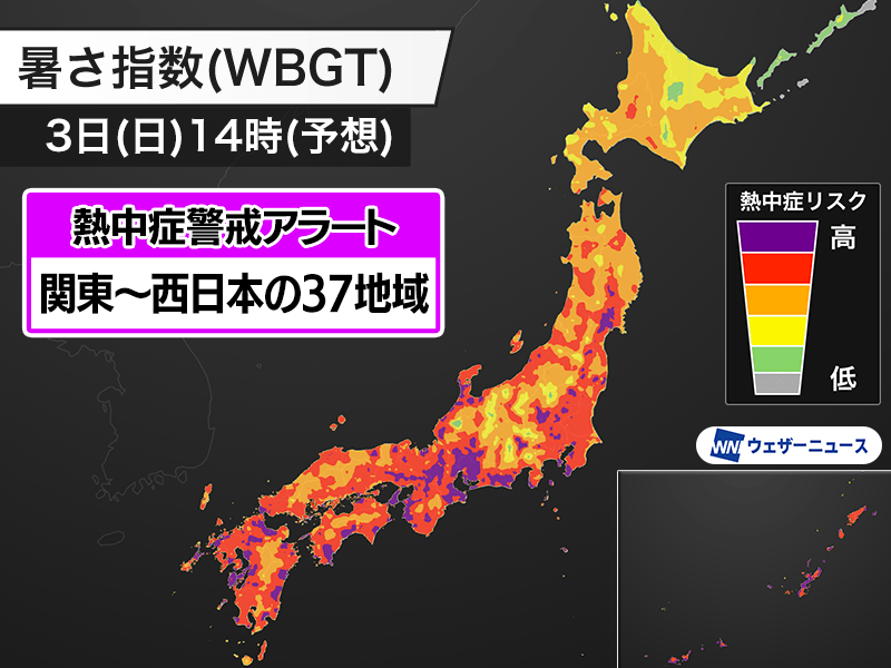 明日8月3日(日)の熱中症警戒アラート 東京都や大阪府など37地域に発表